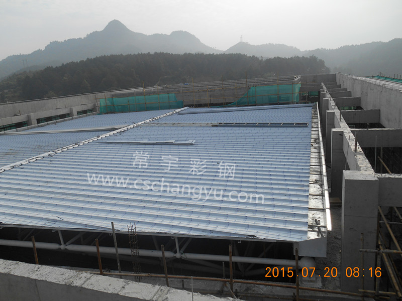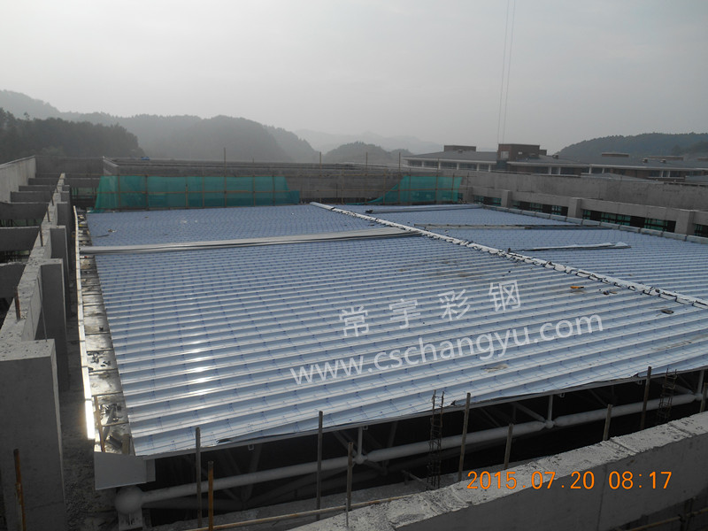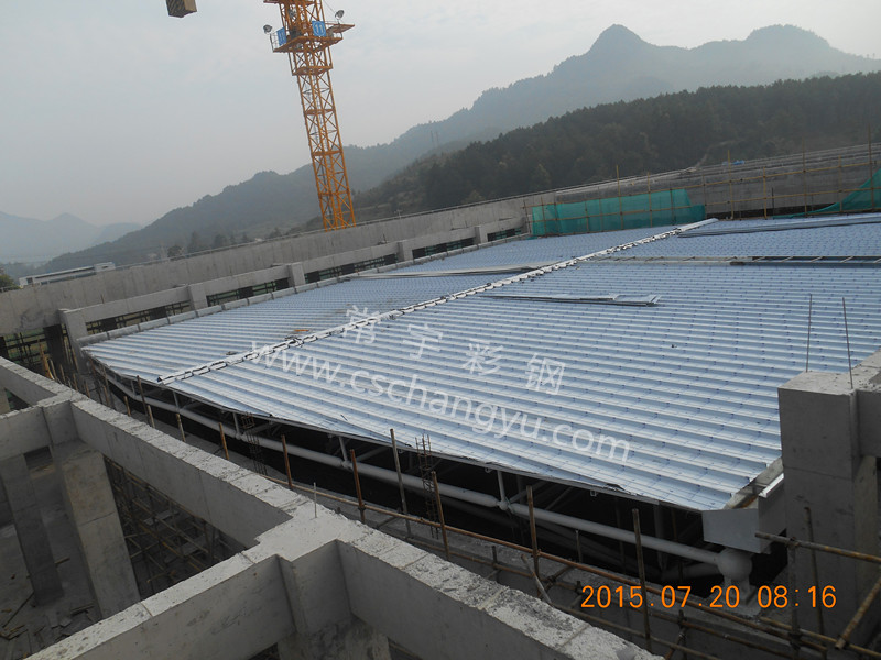 发布时间:2015-7-29来源:常宇彩钢作者:常宇彩钢浏览次数:(0) 1.0mm PVDF涂层直立锁边铝镁锰板应用案例 _遵义会堂钢结构屋面