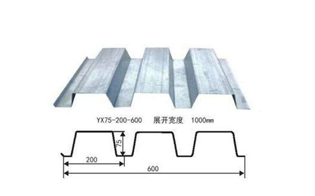 YX75-200-600型楼承板 75为波高,200为波距,600为有效宽度。进料宽度1000mm。